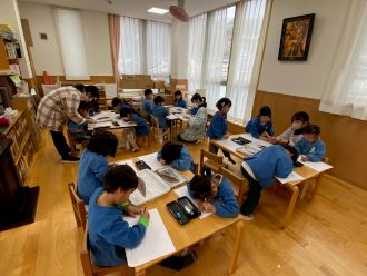 寒波が来るとのニュースを聞いただけで部屋のなかに居ても普段より寒く感じる本日です。ふじ組さんは今日、作品展に展示する予定の魚のデッサンをしています。自由気ままに描く絵と違って、形が上手くとれなかったり、細かい部分の描写が難しかったりとそれぞれに苦労しています。でも出来上がったときは達成感と満足感で心が満たされ、成長の階段を一段上がりますので楽しみに完成を待ちたいと思います。