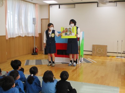 昨日、尾道市から交通安全指導員の方をお招きして、交通安全に関するお話をして頂きました。横断歩道の渡り方、駐車場での立ち振る舞いなどを教えて頂き、子どもたちも真剣な眼差しで聞いていました。ふじ組さんは半年後には小学校です。卒園までの期間、ご家庭でもしっかりと交通ルールを学ぶ機会をつくってあげてください。