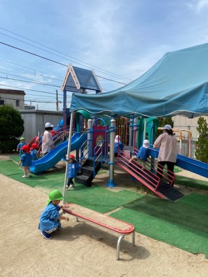 今日はいい天気です。土日の休み明けでしたが新入園児さんの泣き声はあまり聞こえなくなりました。今日の朝は泣き声に変わって歌が聞こえてきました。「屋根よ~りた~か~い鯉の~ぼ~り~」可愛らしい歌声です。これから帽子を被って園庭で遊んで来ます。ではでは。