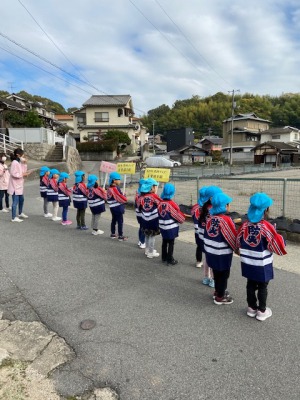 今日は一日中良いお天気で、とても温かい日でした。そんななか保育園では、ふじ組さんが毎年恒例の火の用心まわりに出かけました。手作りのチラシをポストに入れさせて頂きながら、拍子木を叩いて保育園の近隣を歩きました。これから乾燥する季節に入りますので、皆様火の元にはご注意くださいね。「火の用心~」「カッチカッチ」