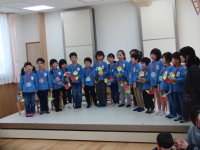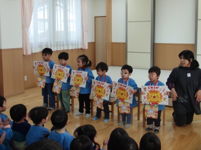 今日は今年度最後のお誕生日会をしました。今月は6名のお友達がお誕生日を迎えました。みんな頼もしく成長しました。これからも愛情をいっぱい受けながら大きくなってくださいね♪おめでとう。その後にふじ組さんのお別れ会をしました。一人ずつ、来月入学する小学校名と、将来なりたい仕事を発表しました。野球選手、サッカー選手、花屋さん、ケーキ屋さん、素敵な職業がいっぱい出てきましたが、これから約15,6年先、今では想像もしていない仕事をしているかもしれませんね。楽しみ楽しみ♪みんなはこれからもずっと友愛っ子です。いつでも遊びに来てくださいね。行ってらっしゃい。
